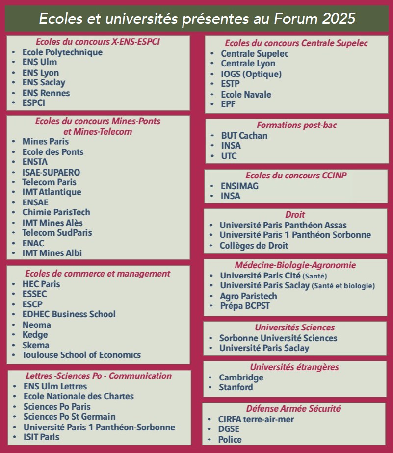 - Une occasion unique pour tous, lycéens, élèves de CPGE, parents, de dialoguer et partager conseils et expériences avec de jeunes intégrés et étudiants,